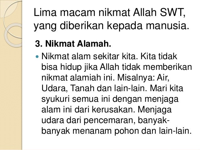 Lima macam nikmat Allah SWT,